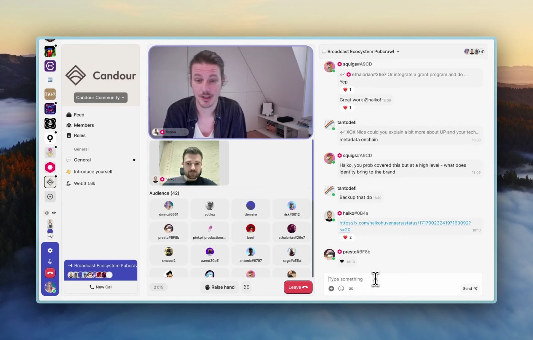 A crypto-native Discord replacement. Venture-funded, the app grew to 50,000+ users. Advanced features like video calls, smart wallets, launching tokens in your community, NFT avatars, and more